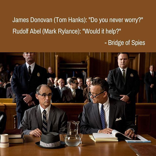 I think about this quote from Bridge of Spies a lot. It’s a perfect encapsulation of stoicism – don’t worry about what you can’t control. This is, of course, easier said than done. However, these days I’m finding myself turning away from the news (about you-know-who, and the other one too) because it’s upsetting. And this might sound fatalistic but, for 99% of the issues involved, I can’t do anything that would have any effect. So why expose myself to it… would it help?